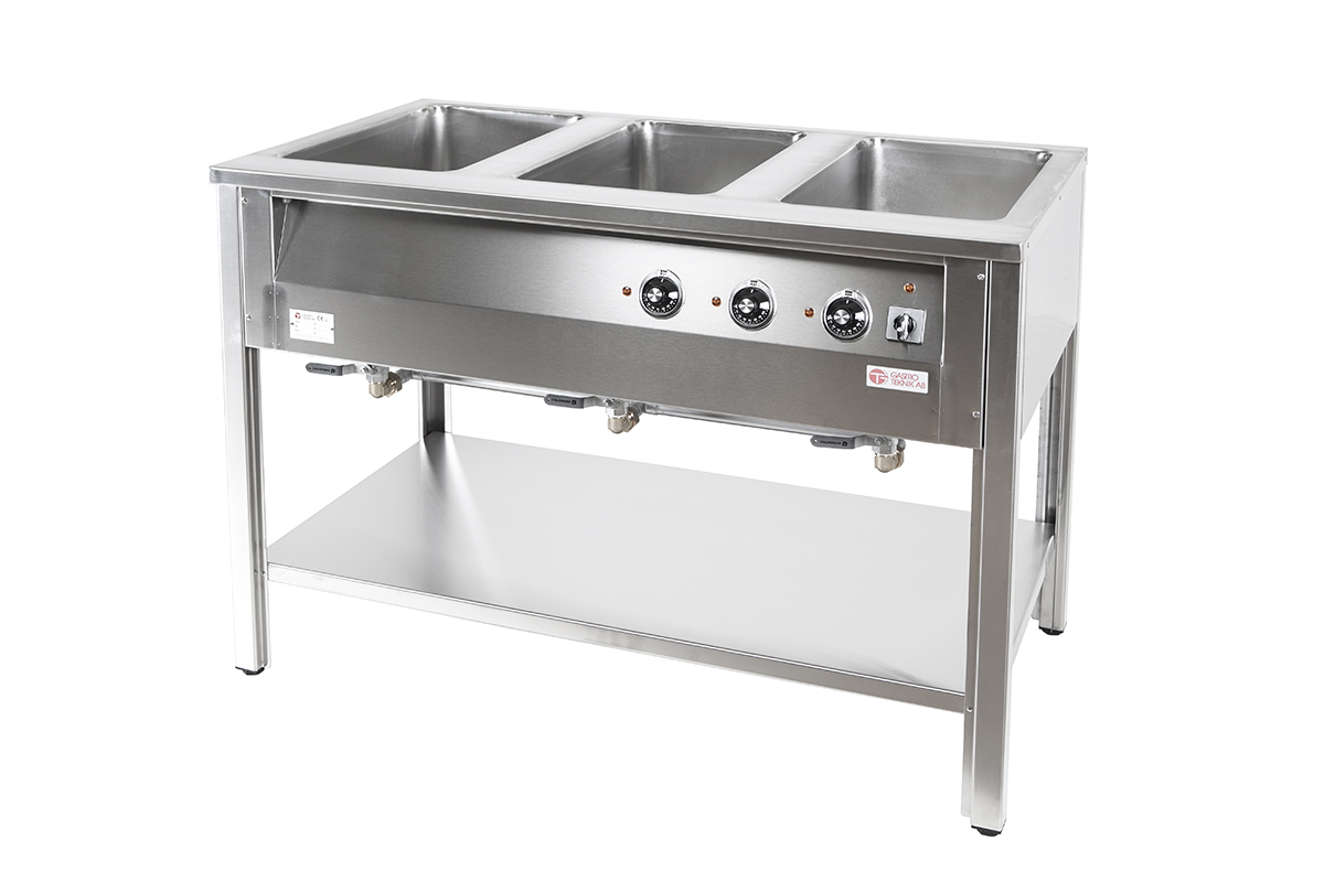 Kokeri på stativ med underhylla, 3 st. brunn för GN 1/1 200 mm kantin.
